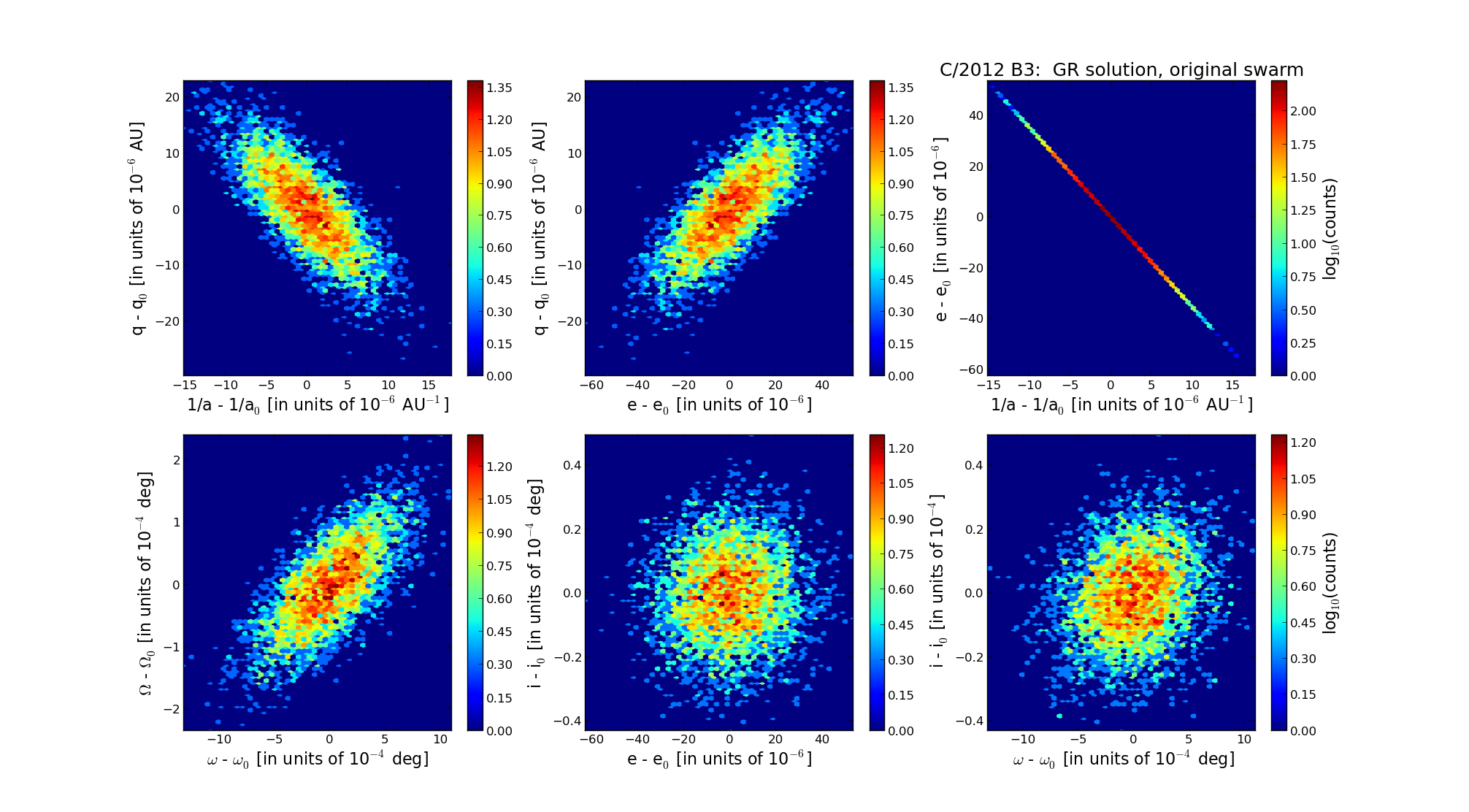 This Oort spike comet suffers small planetary perturbations during its passage through the planetary system that lead to a more tight future orbit (see future barycentric orbit).
