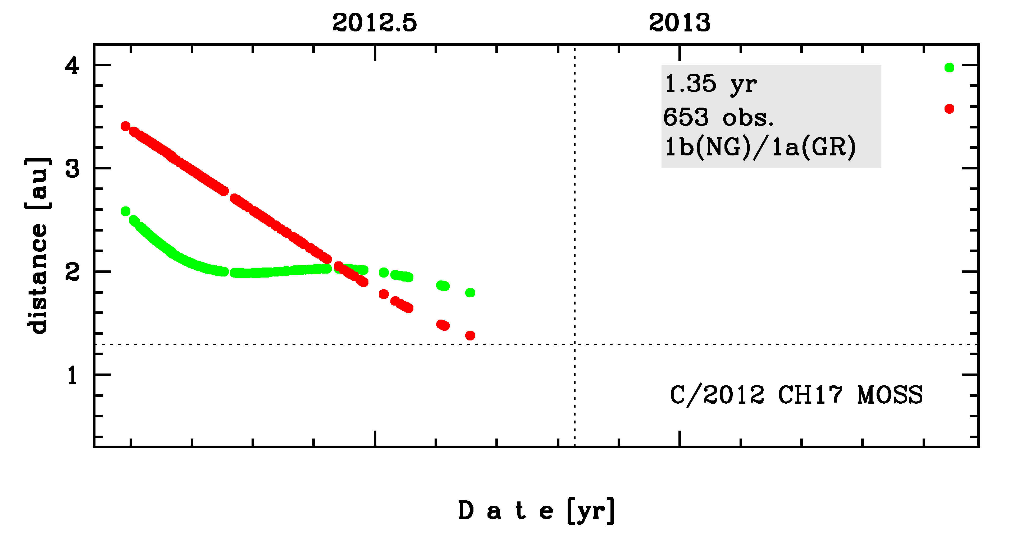 | perihelion distance [au] | 1.29614709 | ± 0.00000282 |