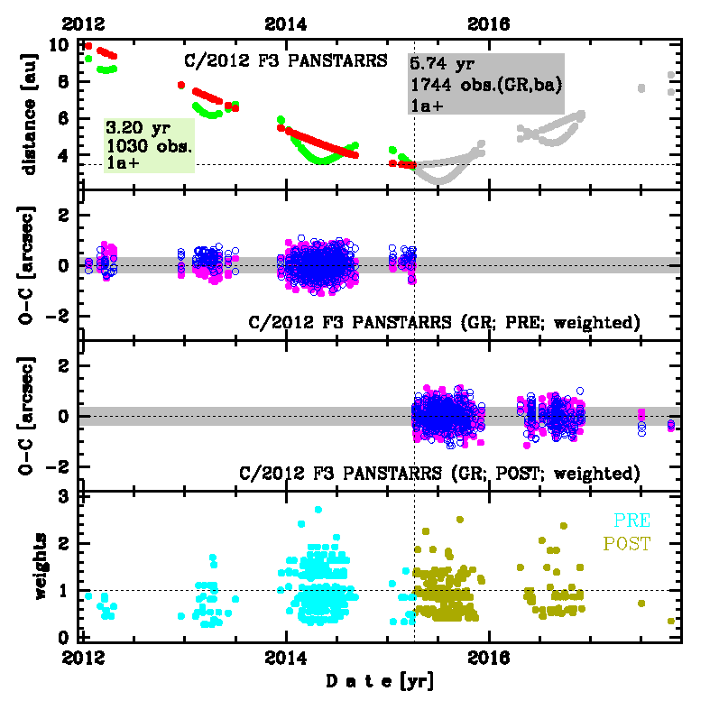 NG orbit using full data-arc as well as using pre-perihelion data are determinable.