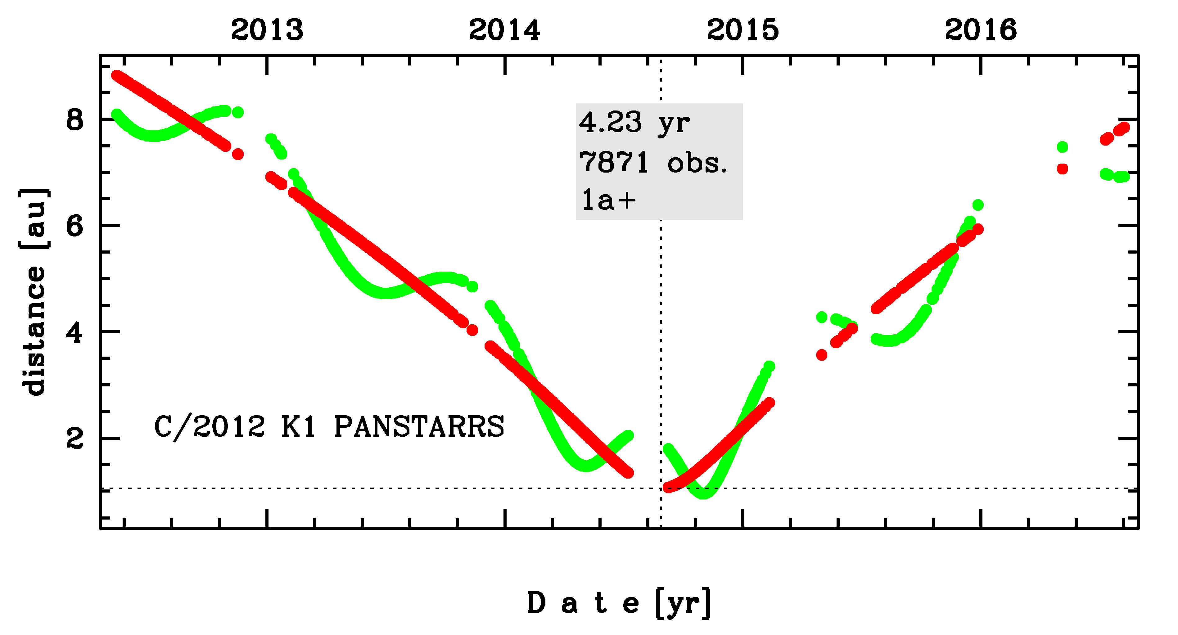 | perihelion distance [au] | 1.05455168 | ± 0.00000013 |