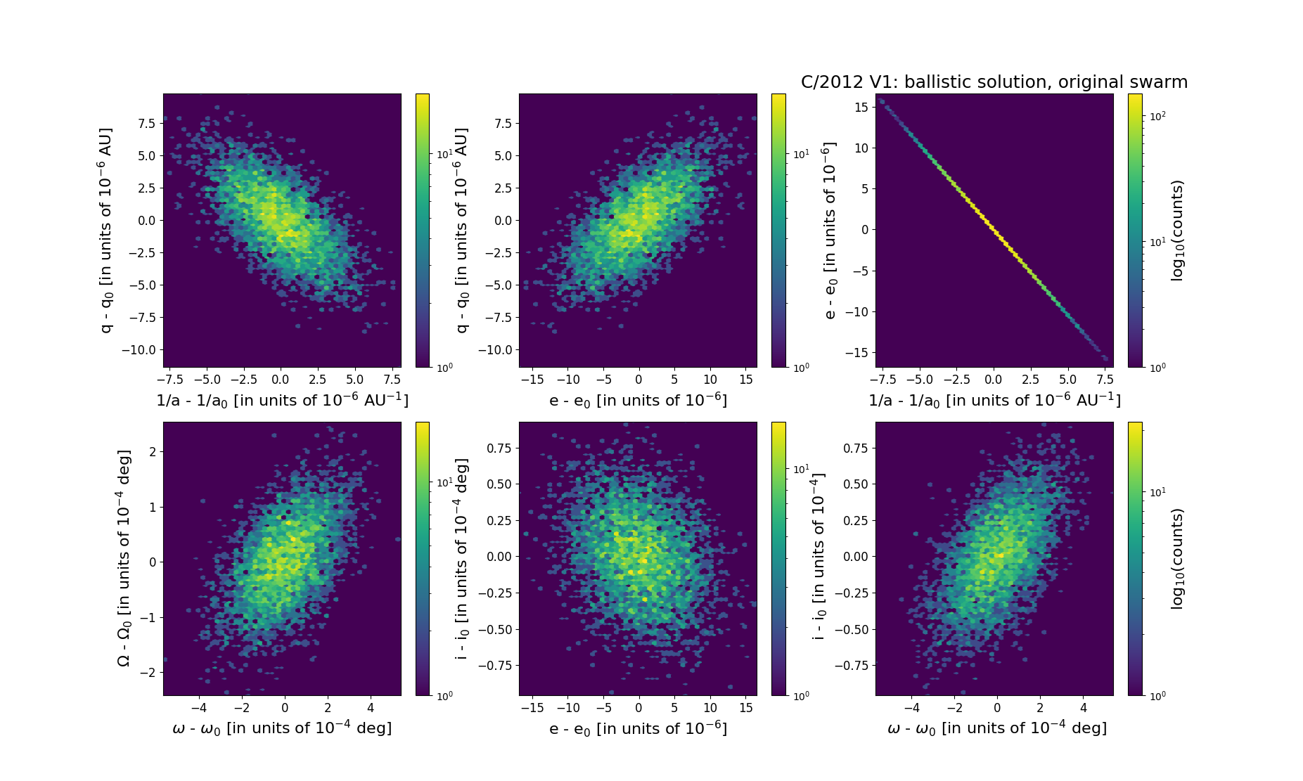 | reciprocal semi-major axis [10-6 au-1] | -15.59 | ± 2.29 |