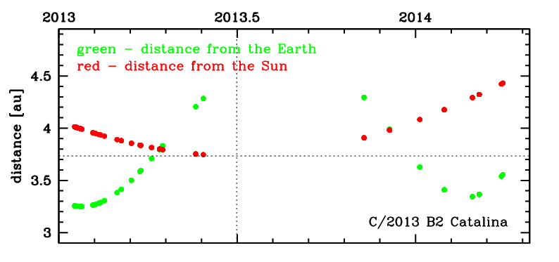 C/2013 B2 had its closest approach to the Earth on 23 January 2013 (3.251 au, one week after discovery, see figure).