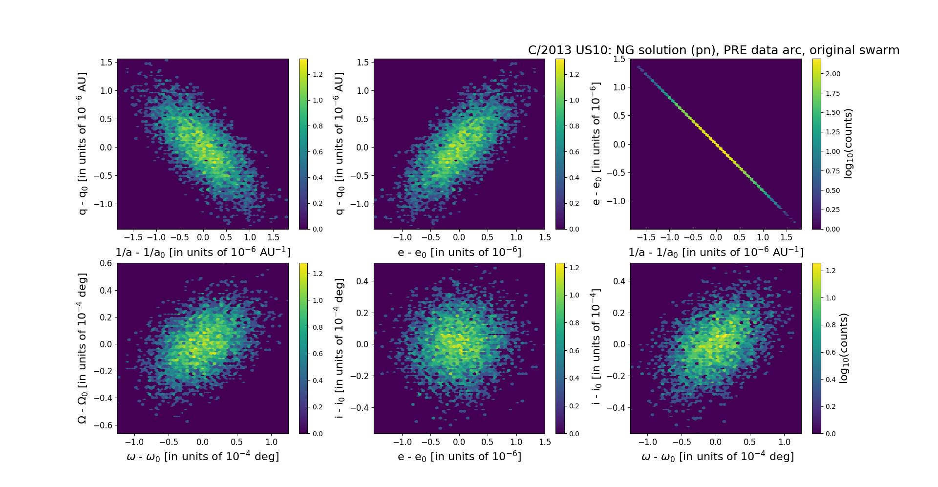 This Oort spike comet suffers moderate planetary perturbations while passing through the planetary system; these perturbations lead to escape the comet from the planetary zone on a hyperbolic orbit (see future barycentric orbits) in all orbital solutions given here except the NG solution based on pre-perihelion leg of orbit; however in this case the radial NG parameter is negative ('solution 'pn'). It is worth pointing out that the comet shows some tiny signs of the influence of NG effects on its orbit on the preperihelion leg at heliocentric distances larger than 3 au (solution 'pc').