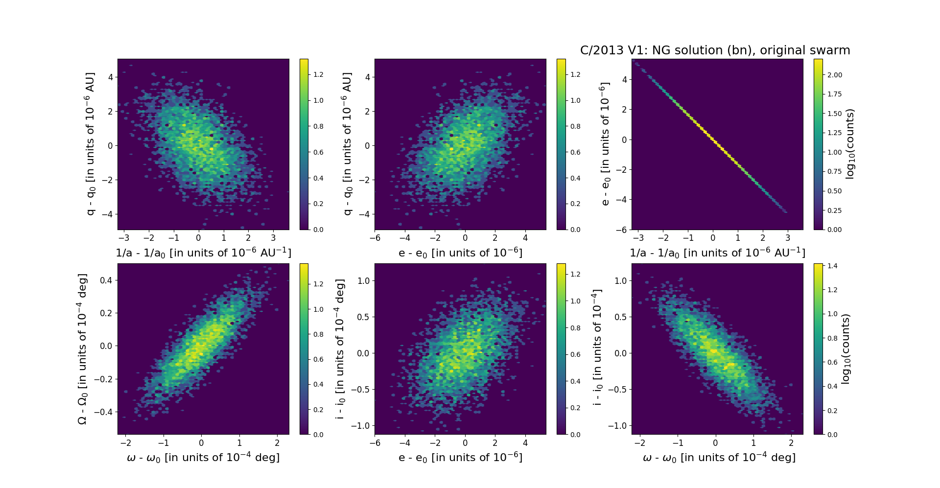This is a comet with NG effects strongly manifested in positional data fitting. Solutions 'a5' and 'n5' (preferred) are based on data spanning over 1.2 yr in a range of heliocentric distances: 2.70 au – 1.661 au (perihelion) – 3.69 au. GR solution 'ba' differ from 'a5' in the method of data weighting, silimarly the pair of NG solutions 'bn' and 'n5'.