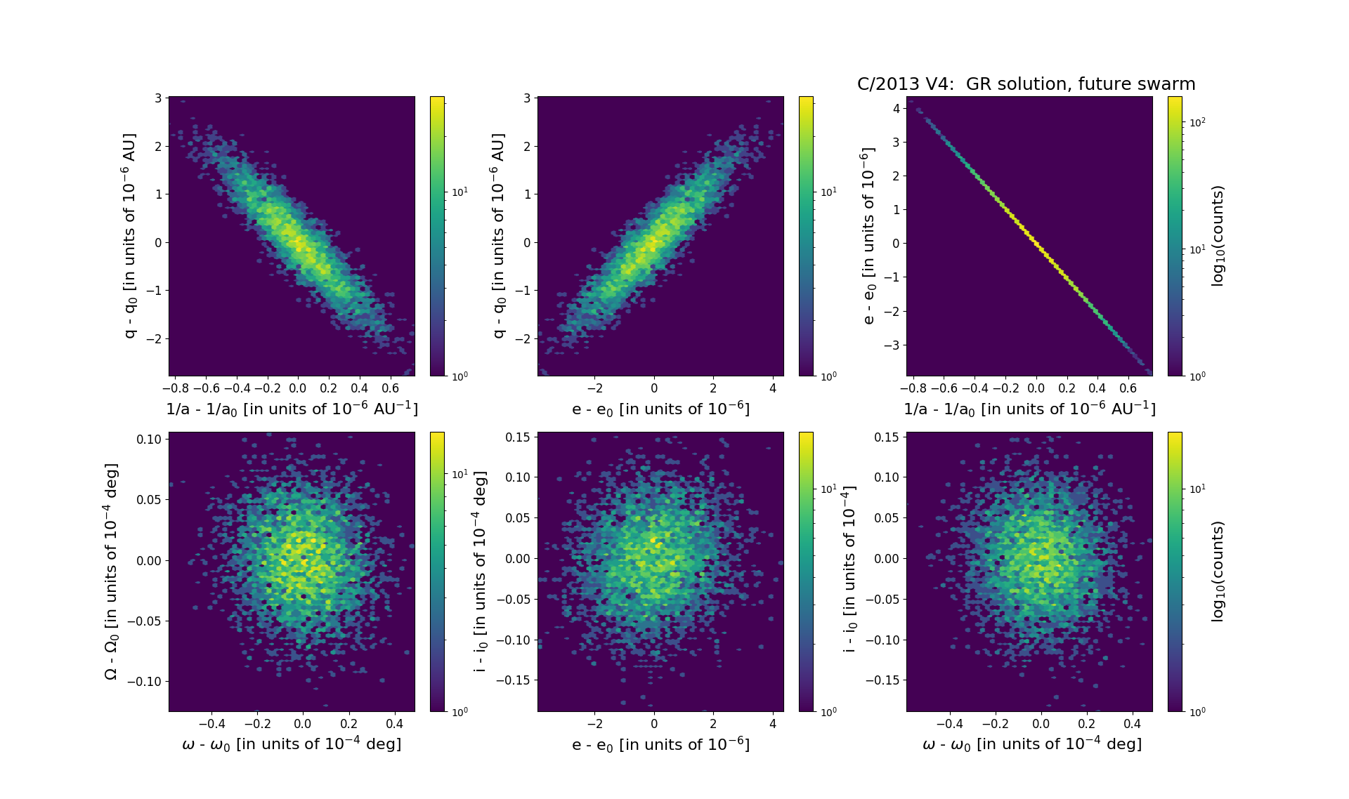 This Oort spike comet suffers slight planetary perturbations during its passage through the planetary system; these perturbations lead to a more tight future orbit (see future barycentric orbits).