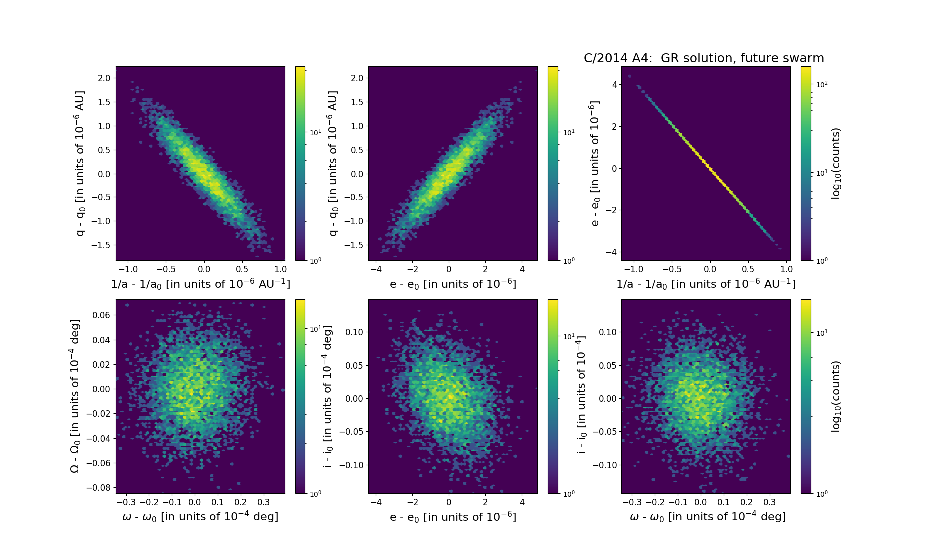 This comet suffers small planetary perturbations during its passage through the planetary system; these perturbations lead to a more tight future orbit (see future barycentric orbits).