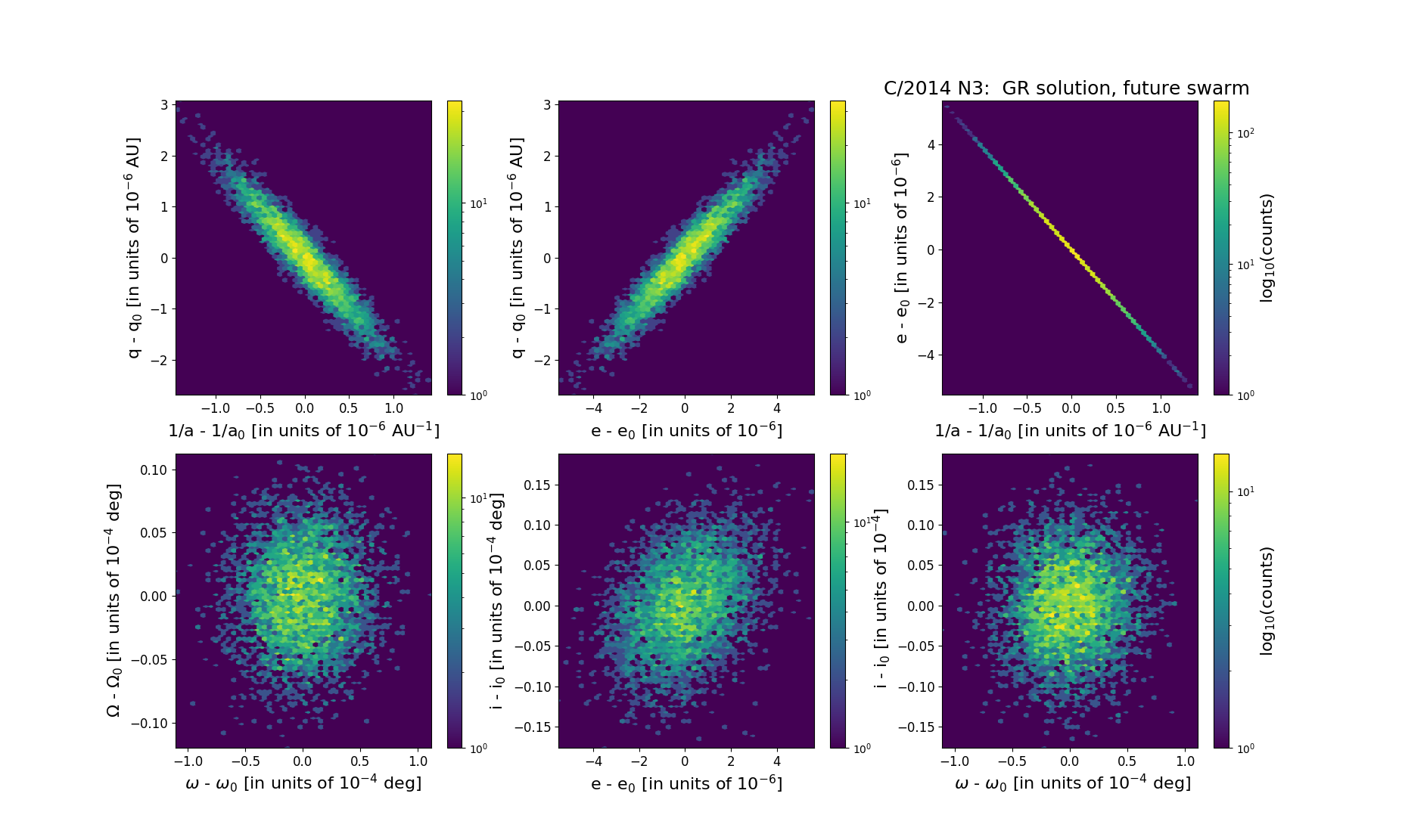This Oort spike comet suffers moderate planetary perturbations during its passage through the planetary system; these perturbations lead to a more tight future orbit (see future barycentric orbits).
