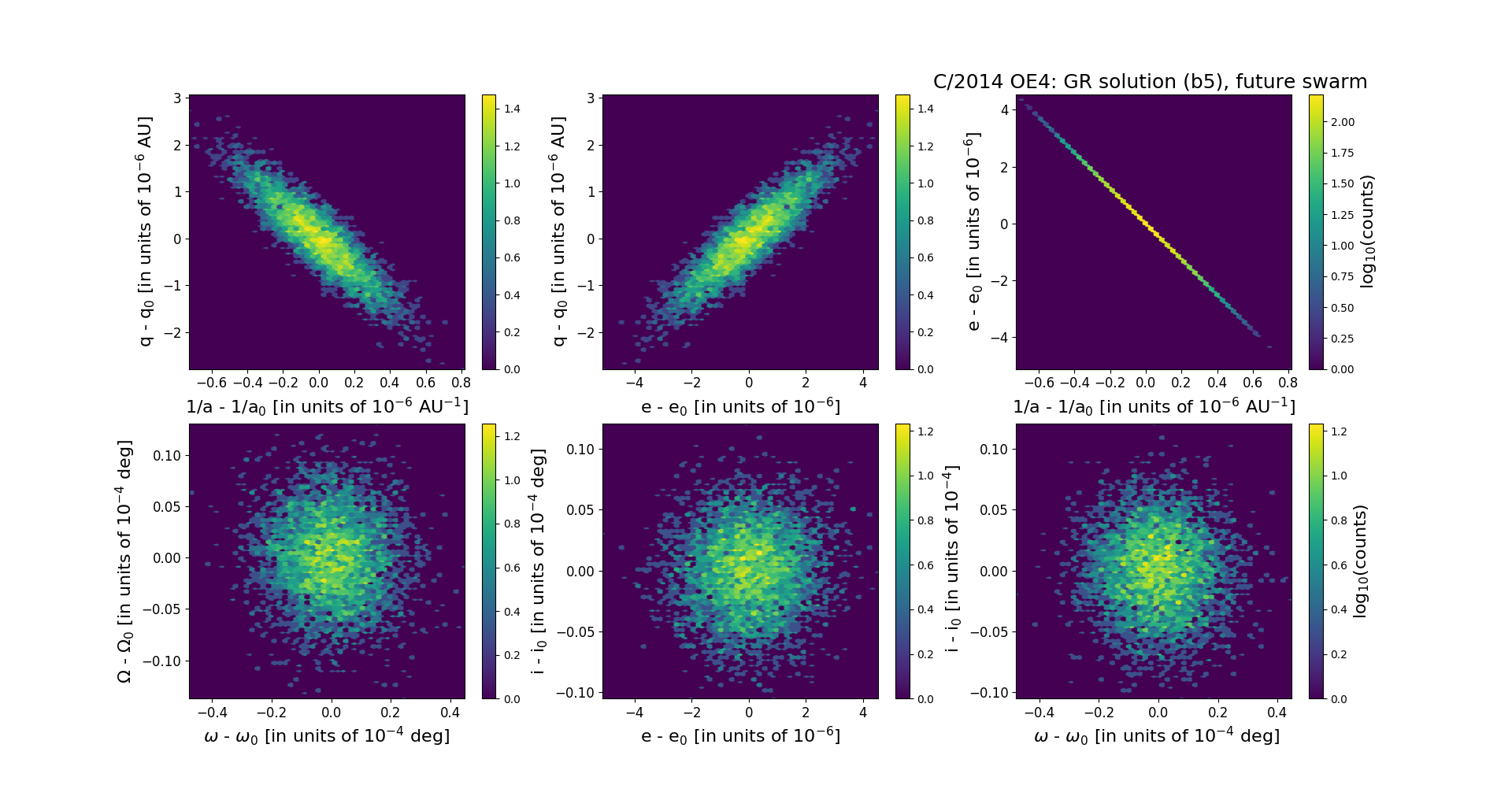 This Oort spike comet suffers slight planetary perturbations during its passage through the planetary system; these perturbations lead to a more tight future orbit with a semimajor axis larger than 10,000 au (see future barycentric orbits).