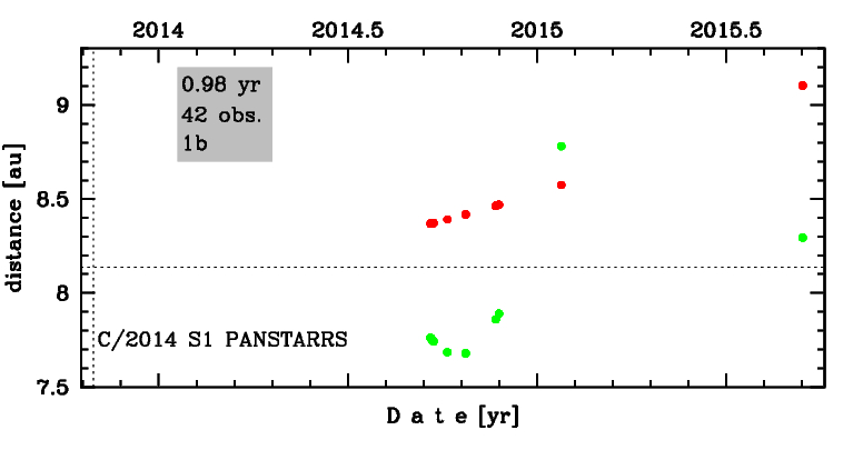 Comet C/2014 S1 was discovered on 19 September 2014 with Pan-STARRS 1 telescope (Haleakala), that is about 11 months after its perihelion passage. This comet was rarely observed until 3 September 2015.