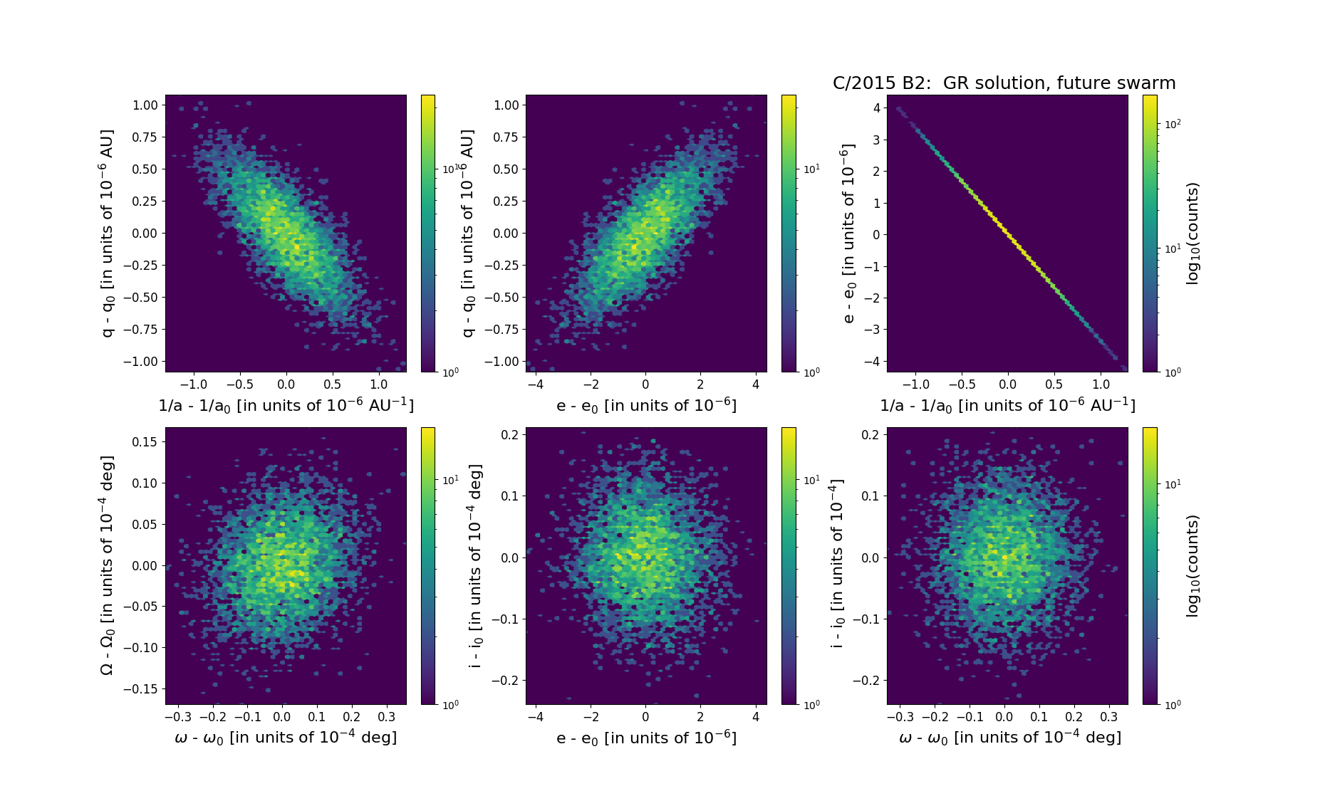 This comet suffers tiny planetary perturbations during its passage through the planetary system; have orignal semimajor axis of about 4,400 au and slightly tighter future orbit (see future barycentric orbit).
