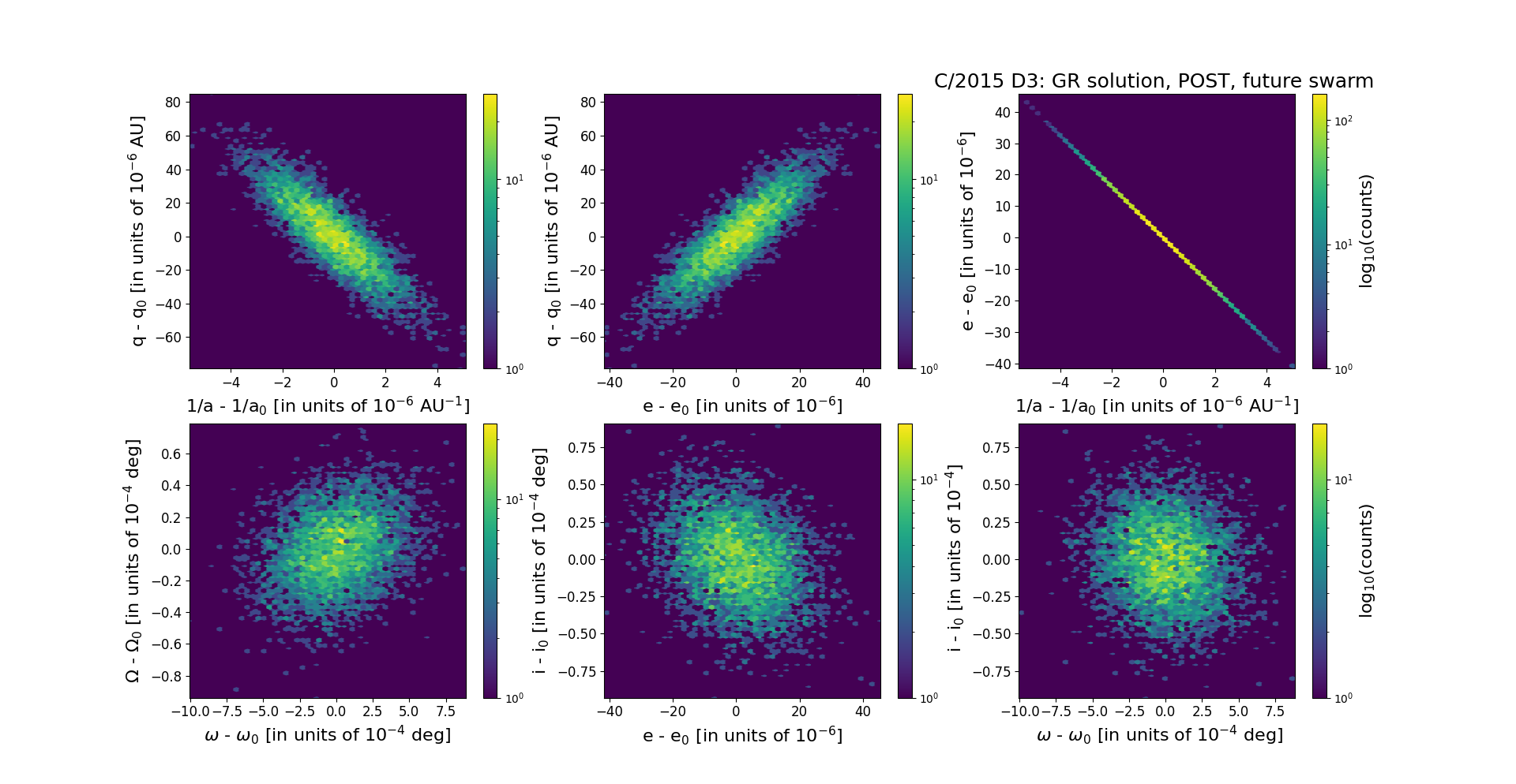 This Oort spike comet suffers slight planetary perturbations during its passage through the planetary system; however, these perturbations likely lead to escape the comet from the planetary zone on a hyperbolic orbit (see future barycentric orbits).