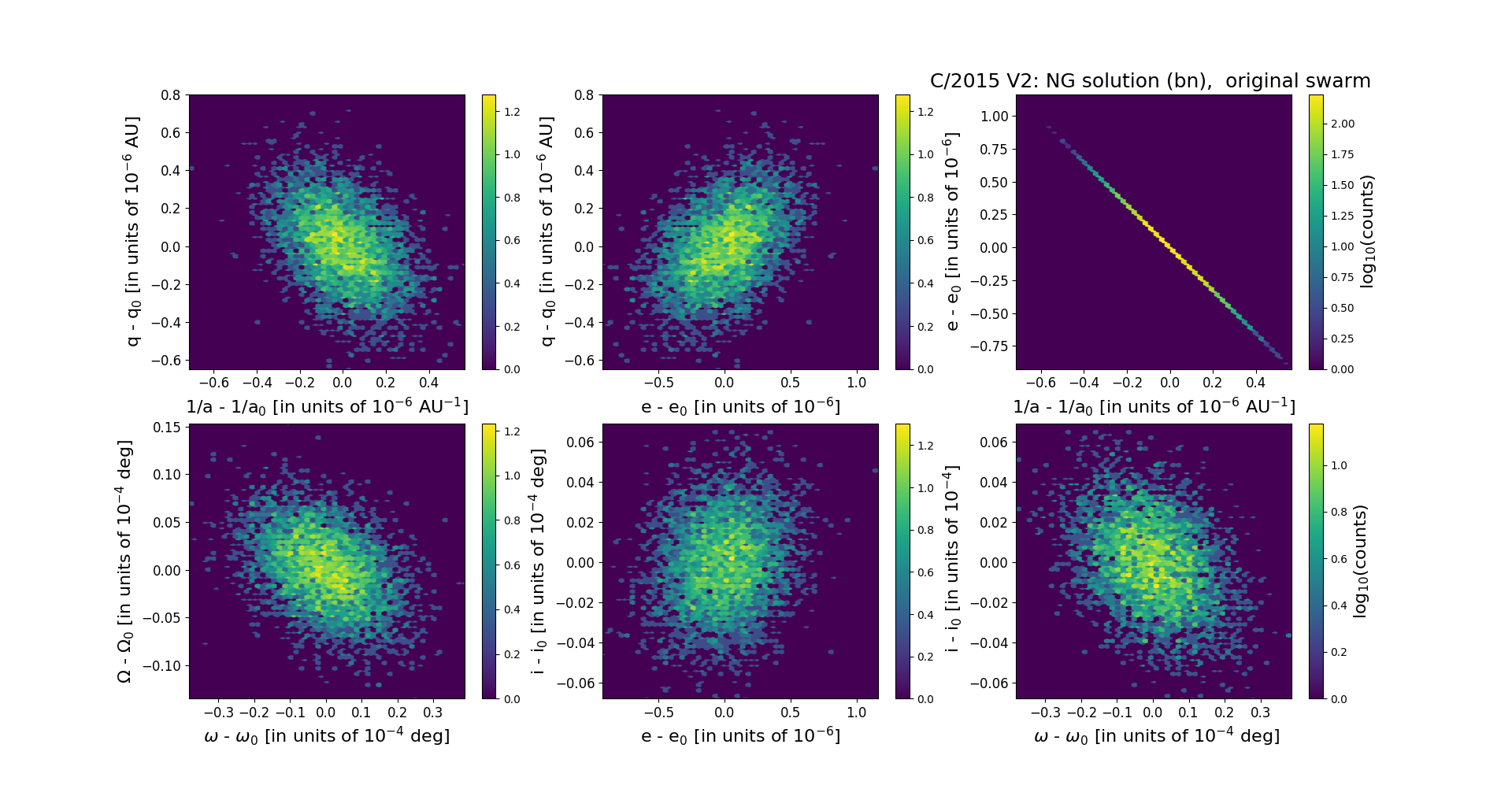 Comet C/2015 V2 was discovered on 3 November 2015 by Jess A. Johnson (Catalina Sky Survey), that is about a year and seven months before its perihelion passage. Next, 14 pre-discovery data were found going back to beginning of 2015 (January 11). Comet was observed extensively until 27 October 2019. C/2015 V2 had closest approach to the Earth on 4 June 2017 (0.811 au, about a week before the perihelion passage).