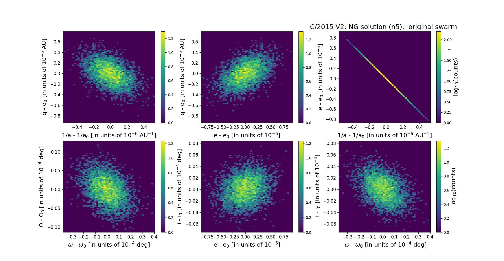 Comet C/2015 V2 was discovered on 3 November 2015 by Jess A. Johnson (Catalina Sky Survey), that is about a year and seven months before its perihelion passage. Next, 14 pre-discovery data were found going back to beginning of 2015 (January 11). Comet was observed extensively until 27 October 2019. C/2015 V2 had closest approach to the Earth on 4 June 2017 (0.811 au, about a week before the perihelion passage).