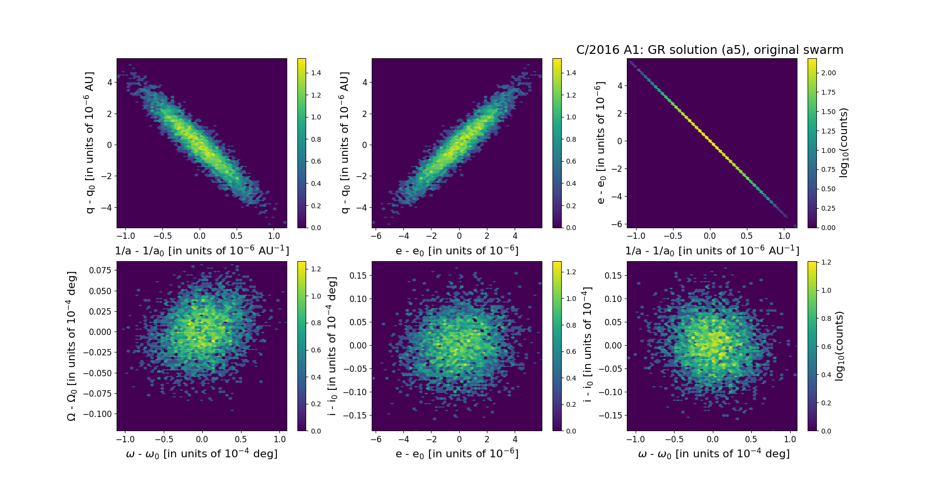 This Oort spike comet suffers small planetary perturbations during its passage through the planetary system that lead to a more tight future orbit (see future barycentric orbit).