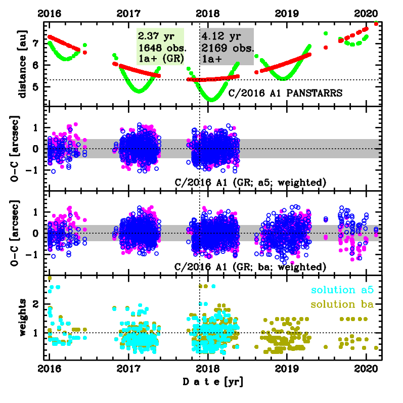 Comet C/2016 A1 was discovered on 1 January 2016 with Pan-STARRS 1 telescope (Haleakala), that is about almost 2 yr before its perihelion passage, and was next observed until 15 February 2020.