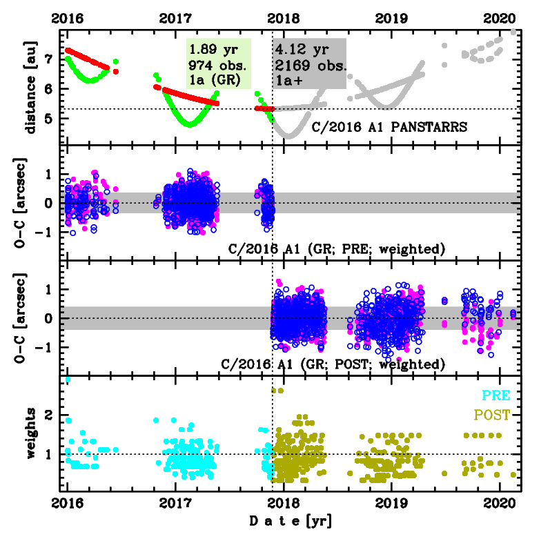 Comet C/2016 A1 was discovered on 1 January 2016 with Pan-STARRS 1 telescope (Haleakala), that is about almost 2 yr before its perihelion passage, and was next observed until 15 February 2020.