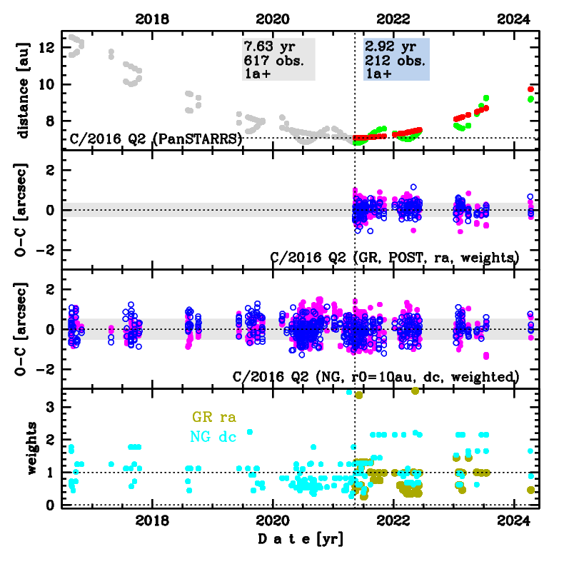 Preferred NG solution given here is based on data spanning over 7.63 yr in a range of heliocentric distances: 12.58 au – 7.08 au (perihelion) – 9.74 au.
