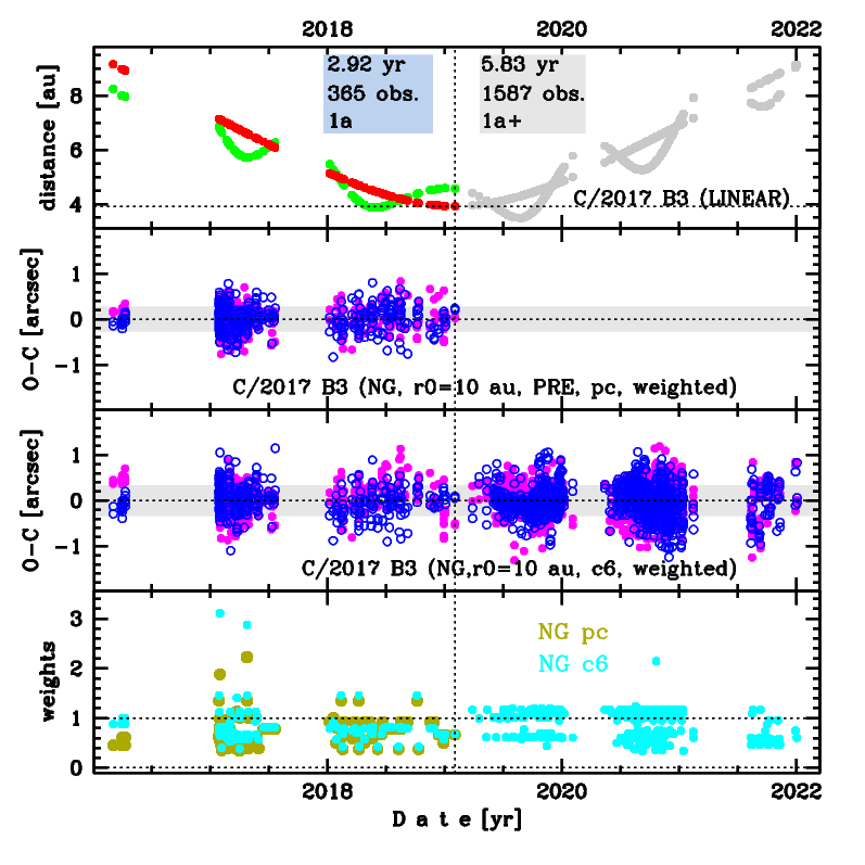 Preferred NGnbsp;solution given here is based on data arc spanning over 5.83nbsp;yr in a range of heliocentric distances: 9.16 au – 3.92 au (perihelion) – 9.15 au.