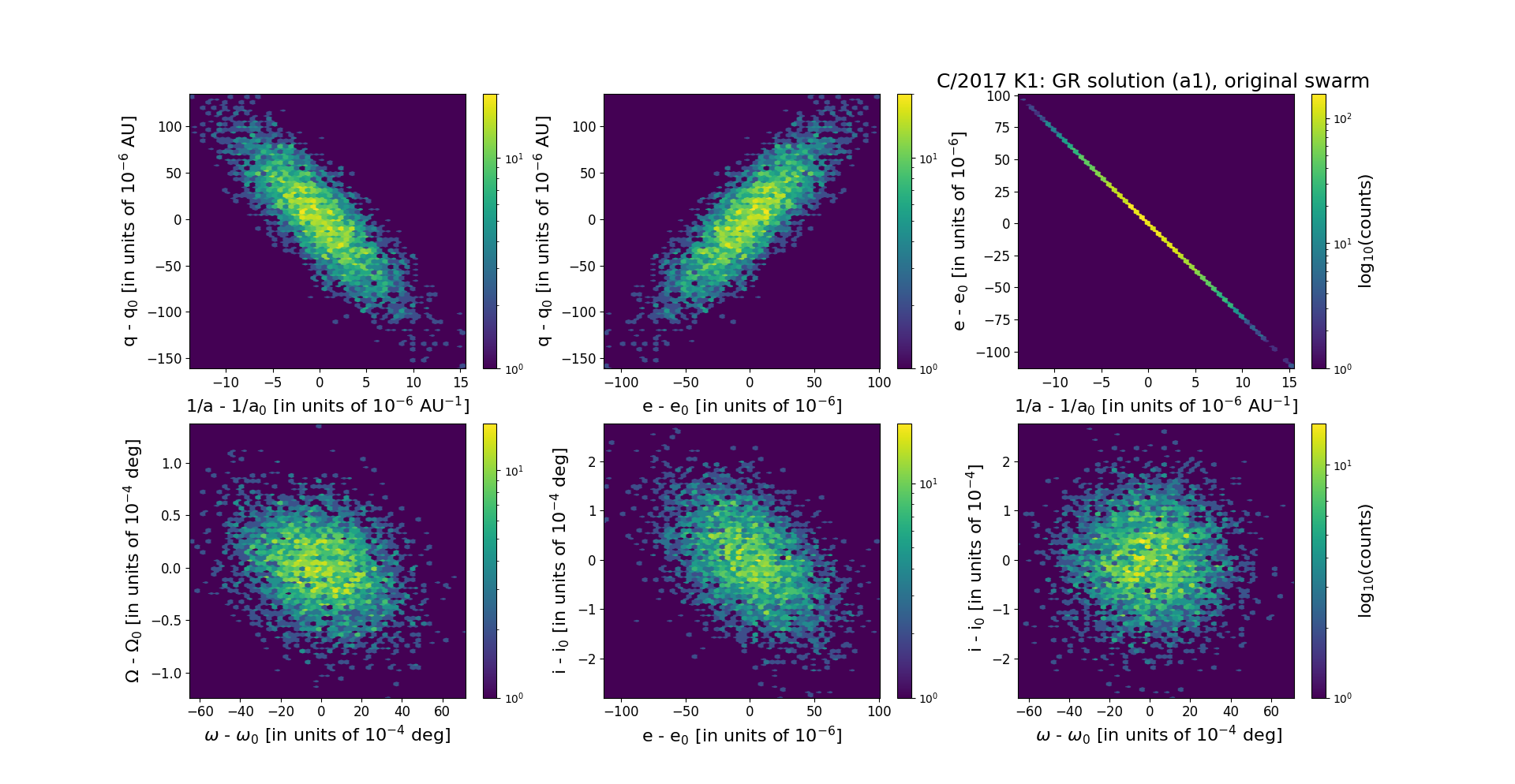 This Oort spike comet suffers tiny planetary perturbations during its passage through the planetary system that likely lead to a bit tighter future orbit (see future barycentric orbits).
