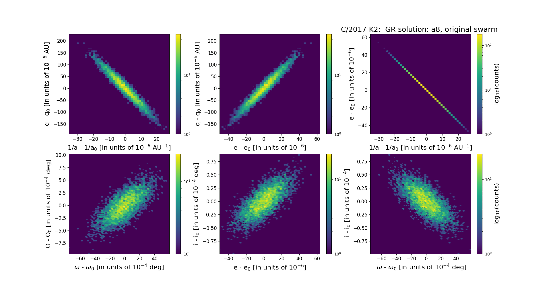Solutions given here are based on pre-perihelion data and different data-arcs, for more see respective solutions; the longest data arc is spanning over 8.90 yr in a range of heliocentric distances from 23.74 au to 3.52 au (7 April 2022)