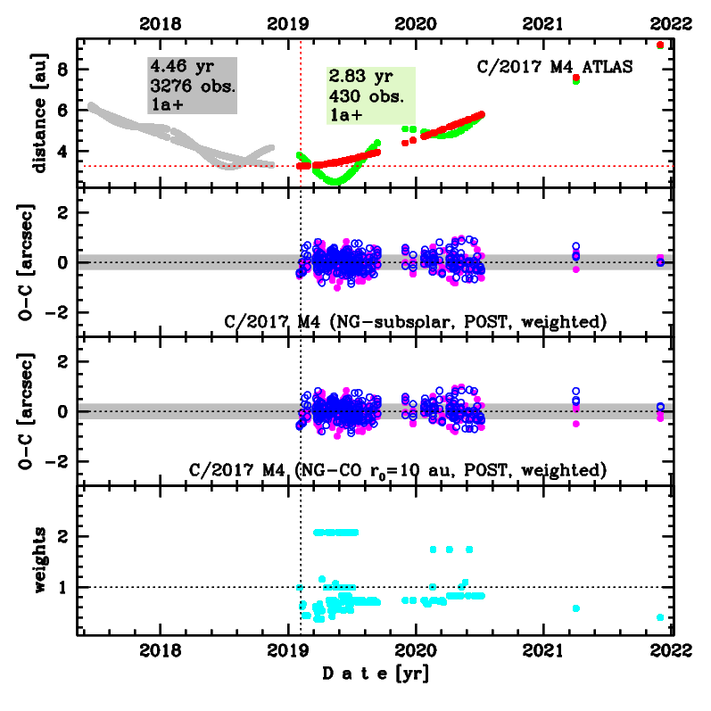| type of model of motion | NH - non-gravitational orbits for water sublimation from subsolar point | |