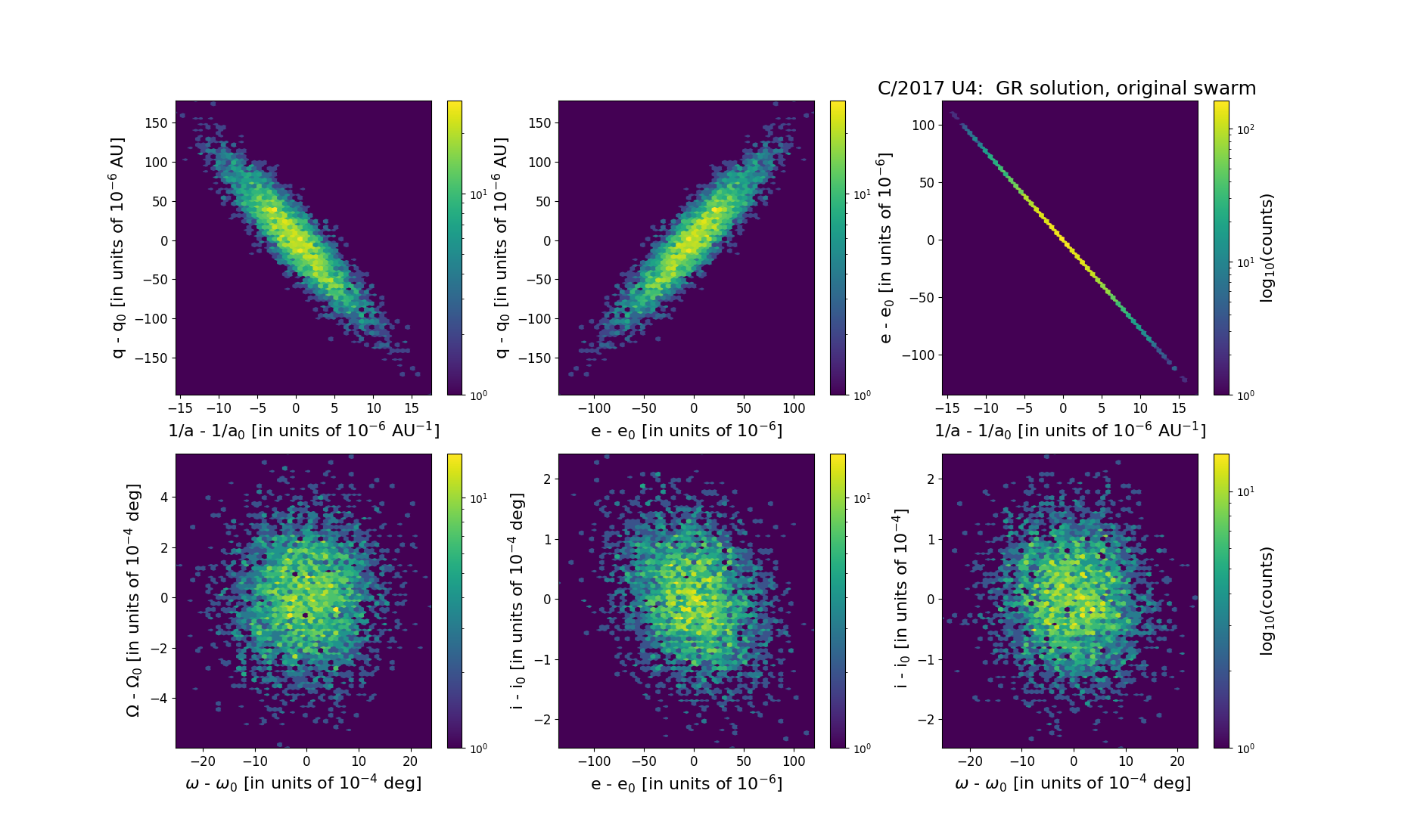 This near-parabolic comet suffers tiny planetary perturbations during its passage through the planetary system (original and future semimajor axes around 9,000 au).