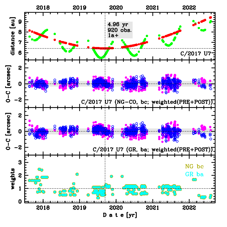| detectability of NG effects in the comet's motion | comet with determinable NG~orbit | |