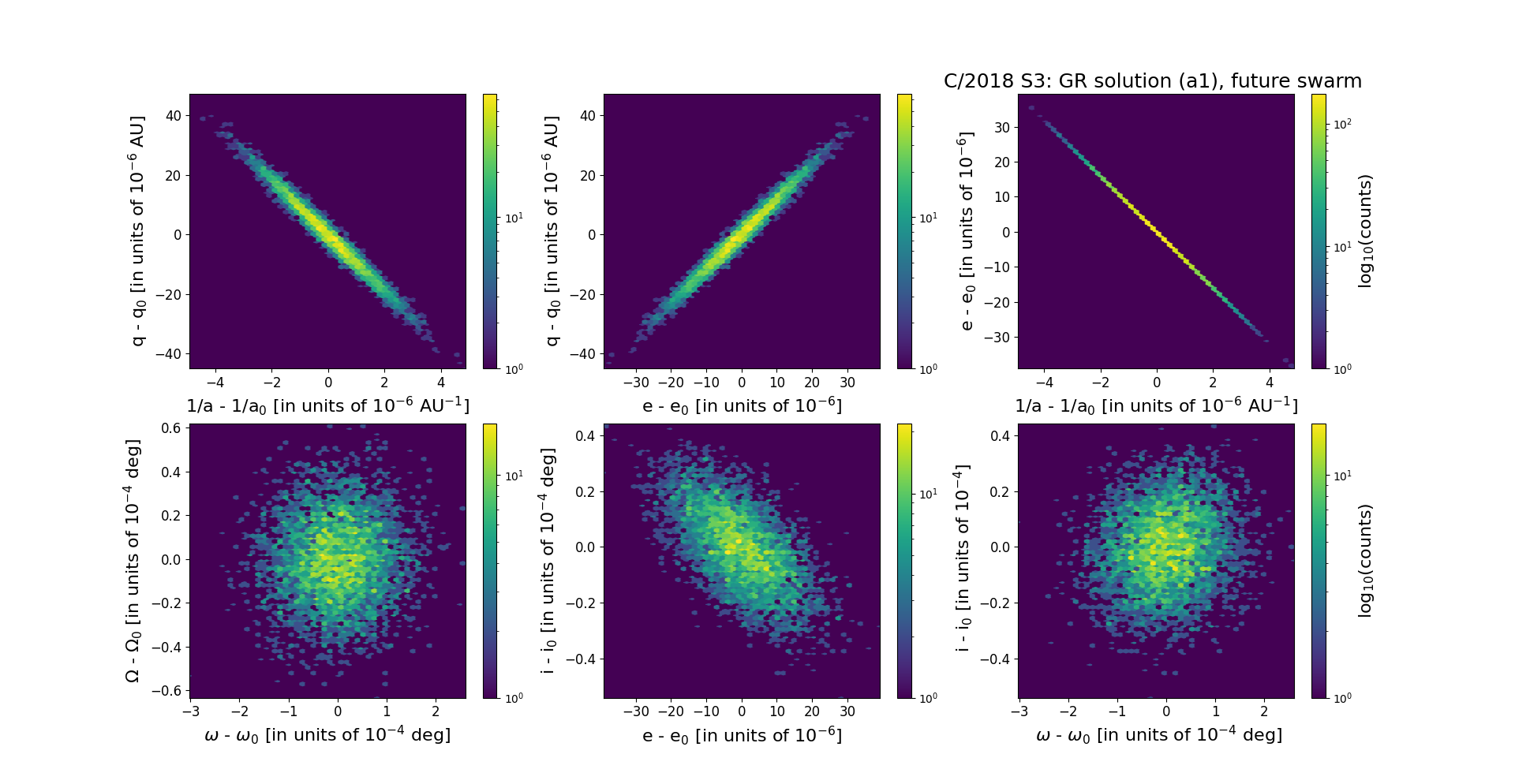 This Oort spike comet suffers tiny planetary perturbations during its passage through the planetary system that lead to a future orbit with greater semimajor-axis (see future barycentric orbit).