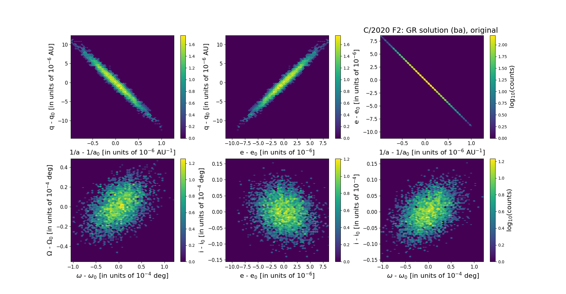 This Oort spike comet suffers tiny planetary perturbations during its passage through the planetary system that lead to a bit less tight future orbit inside the Oort spike zone (see future barycentric orbits).