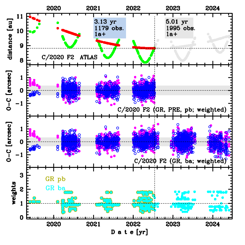 The preferred GR solution given here is based on data span over 5.01 yr in a range of heliocentric distances: 10.96 au – 8.82 au (perihelion) – 9.66 au.