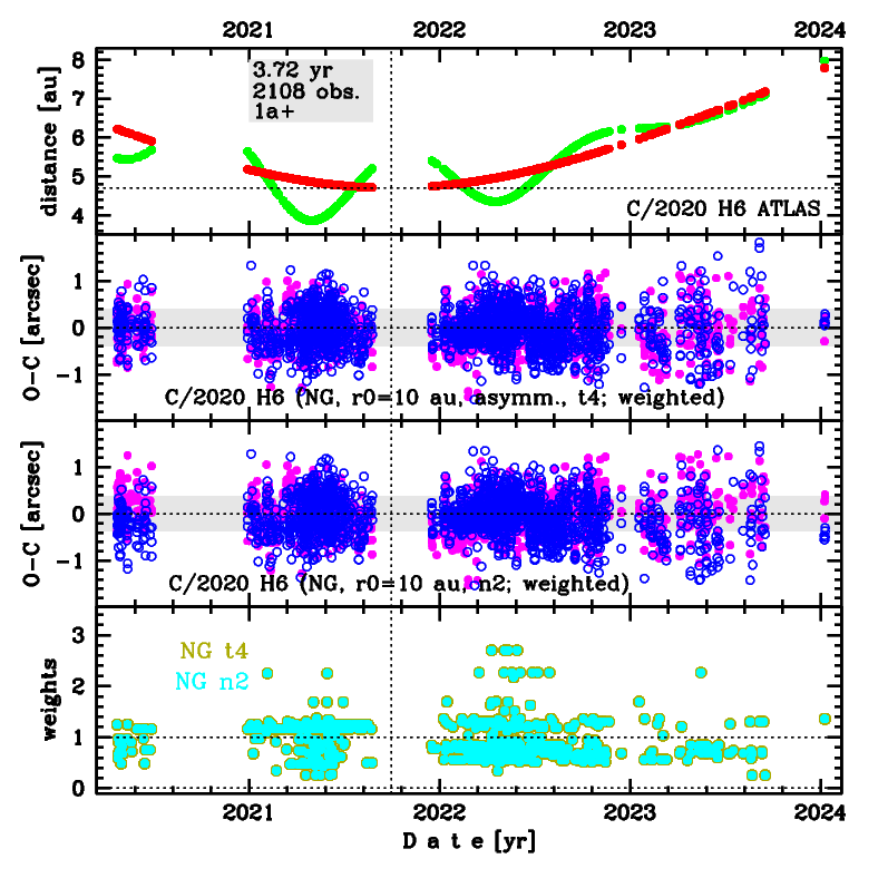 | type of model of motion | NC - non-gravitational orbits for symmetric CO-g(r)-like function | |