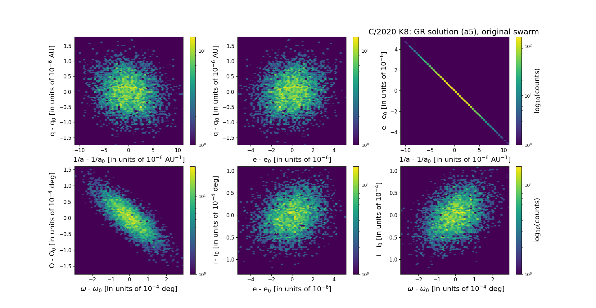 Solutions given here (NG and GR) are based on data span over 0.866 yr in a range of heliocentric distances: 2.18 au – 0.475 au (perihelion) – 3.40 au.