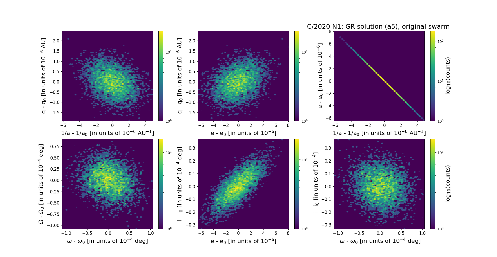 Solutions given here (NG and GR) are based on data span over 0.786 yr in a range of heliocentric distances: 3.55 au – 1.32 au (perihelion) – 1.41 au.
