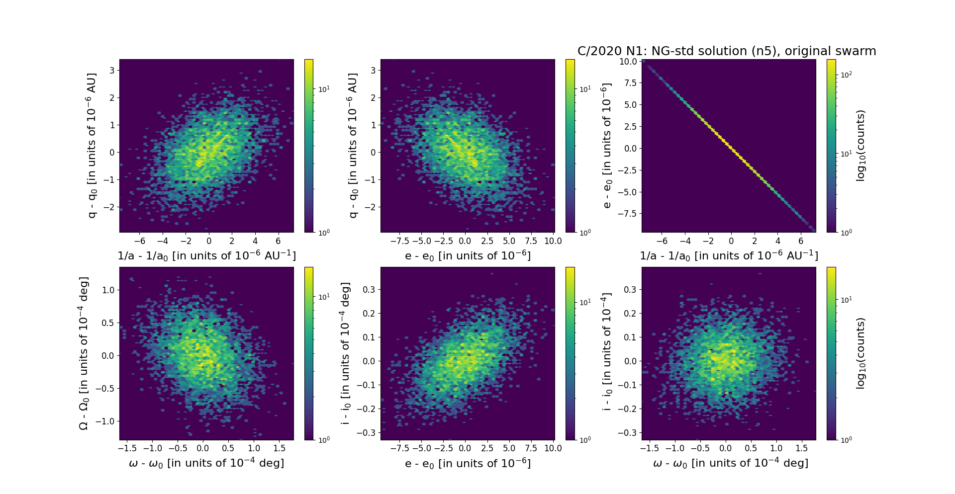 Solutions given here (NG and GR) are based on data span over 0.786 yr in a range of heliocentric distances: 3.55 au – 1.32 au (perihelion) – 1.41 au.