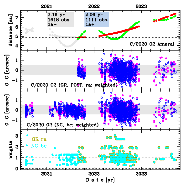Comet C/2020 O2 was discovered on 23 July 2020, more than one year before its perihelion passage. This comet was observed until 21 September 2024 (as in February 2025).