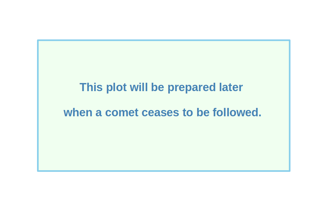 Currently, solutions (GR and NG) based on pre-perihelion data are given. Therefore, the data arc span over 3.0 yr in a range of heliocentric distances from 10.08 au to 2.24 au.Orbits based on a distant part of data arc are also given (helicentric distances greater than 3.5 au).